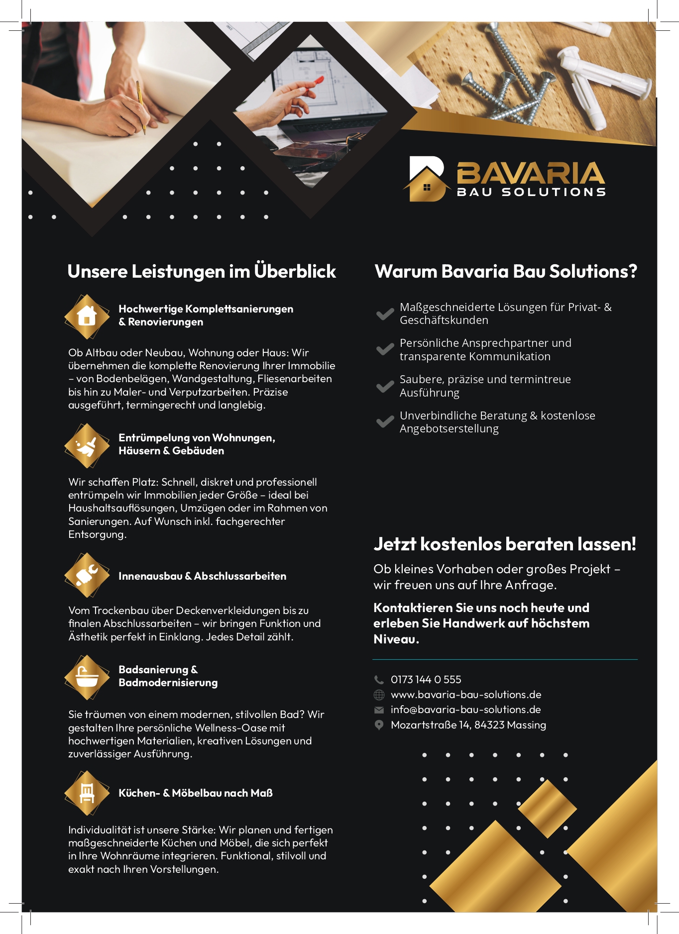 Ob hochwertige Wohnungsrenovierung oder technisch anspruchsvolle Schulmöbelmontage – mit uns haben Sie einen Partner an der Seite, der Projekte sauber, zuverlässig und professionell umsetzt.
